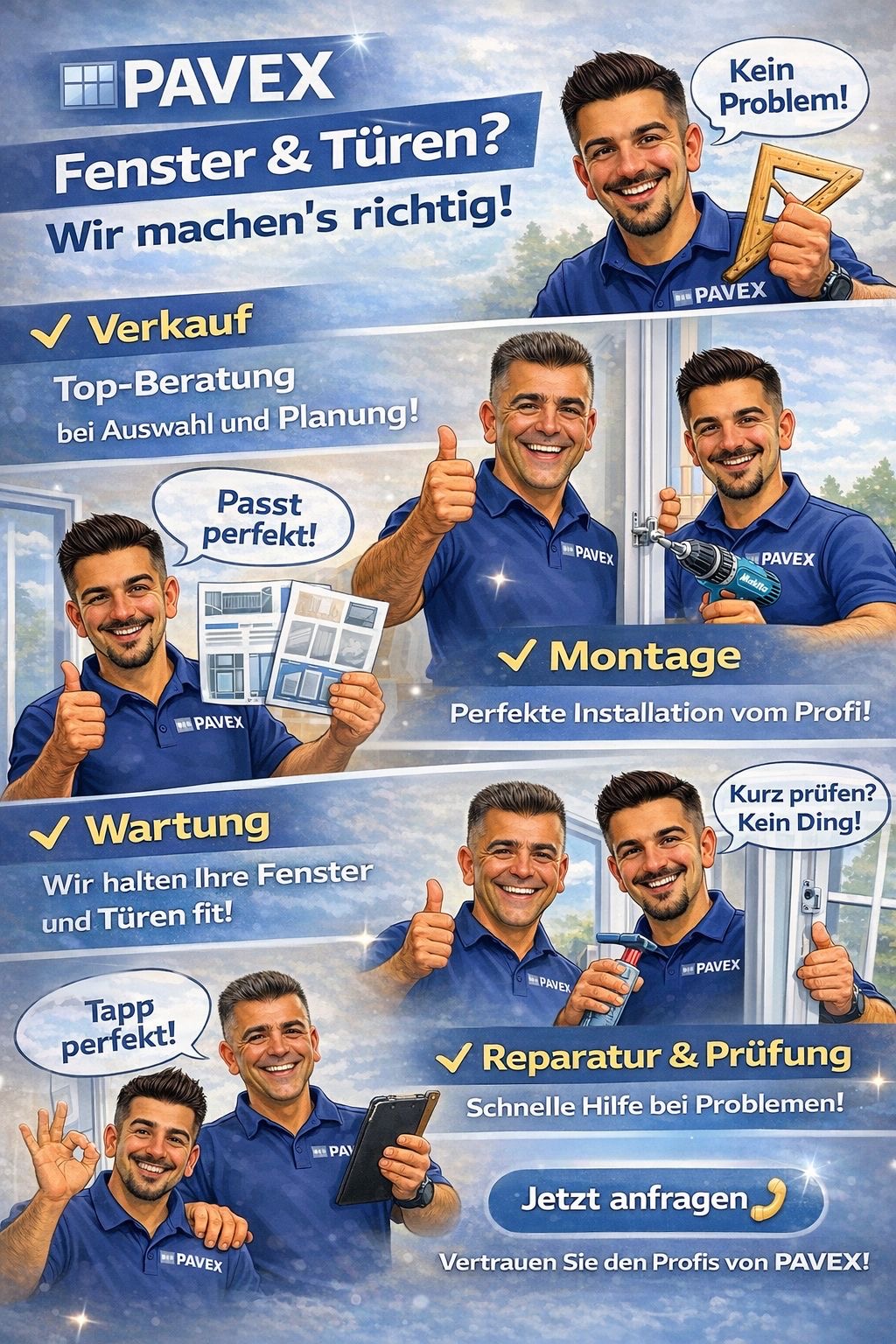 PAVEX ist seit 2020 ein vertrauenswürdiger Partner in Stuttgart für professionelle Montage, Reparaturen, Zuverlässigkeit und Fachkenntnisse im Bereich Türen, Fenster und vieles mehr.